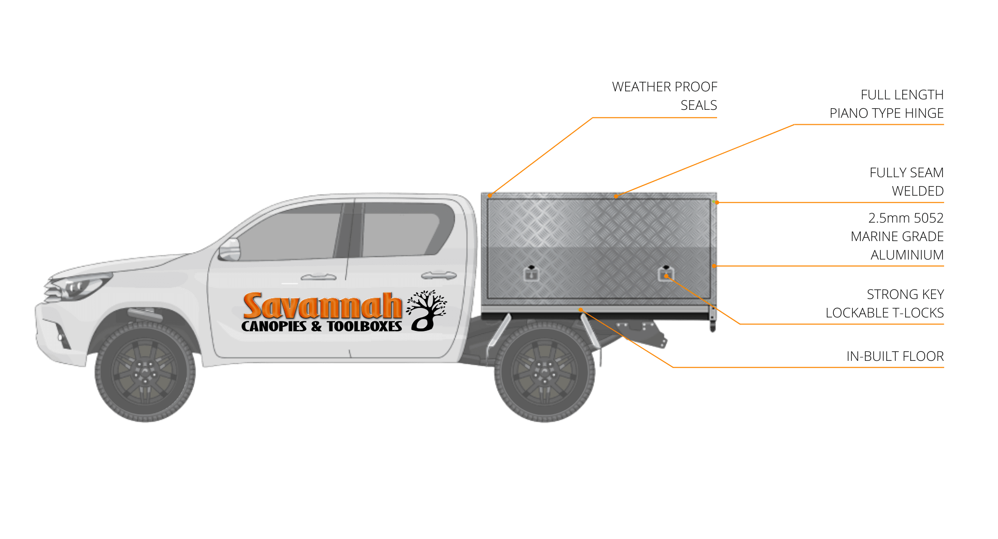 - Internal 60x30x2.5mm RHS bracing allowing up to 300kg of static weight and 150kg of dynamic weight on the canopy roof