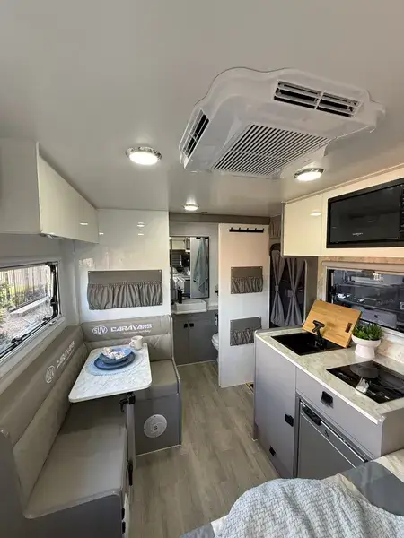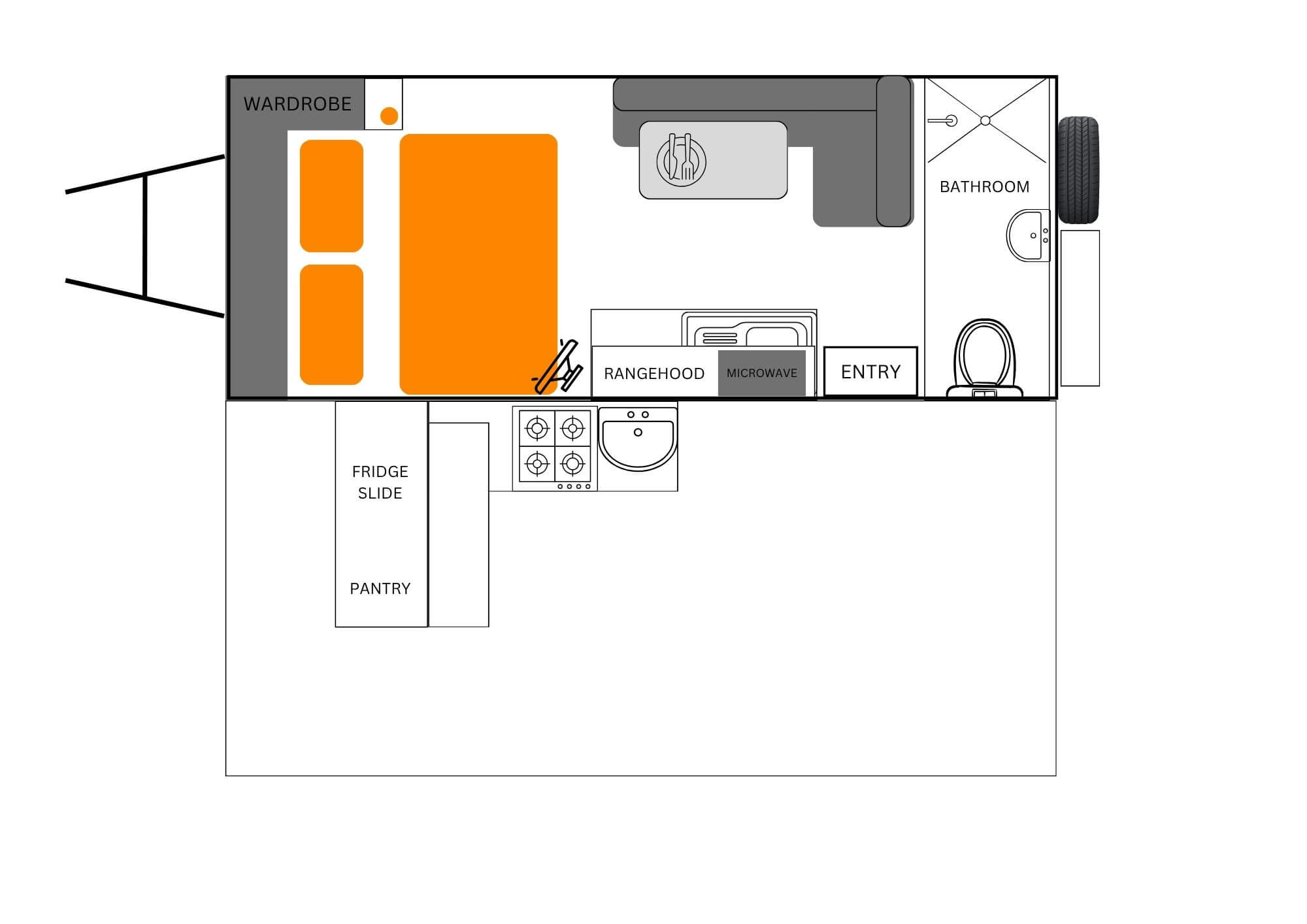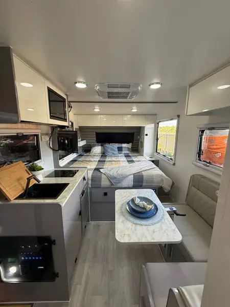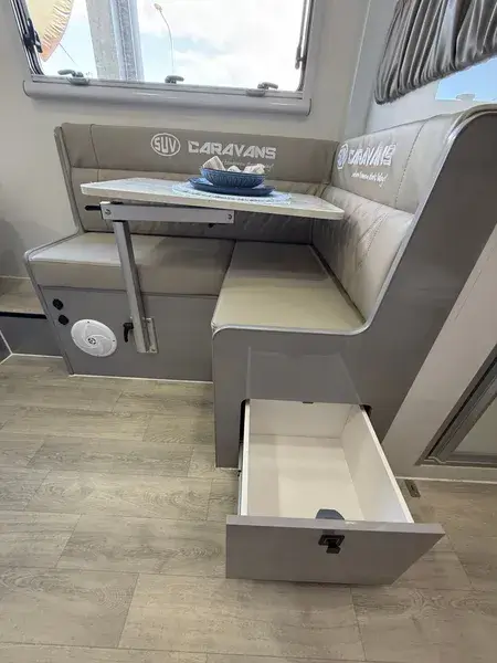 Our latest 14-footer proves that big adventures don’t need a big caravan. Designed for travellers who crave freedom without compromise, it packs a king bed, a comfy corner lounge, and true separate toilet and shower rooms into a compact, go-anywhere design. Whether you’re chasing sunsets up the coast or waking to misty mountain mornings, you’ll have all the comforts of home on the road. Cook inside or under the stars, stay warm with the diesel heater, and power everything you need with 600W solar, 600Ah lithium, and a 3000W inverter. Simple, strong, and ready for wherever the map takes you—this is how caravans should be made.