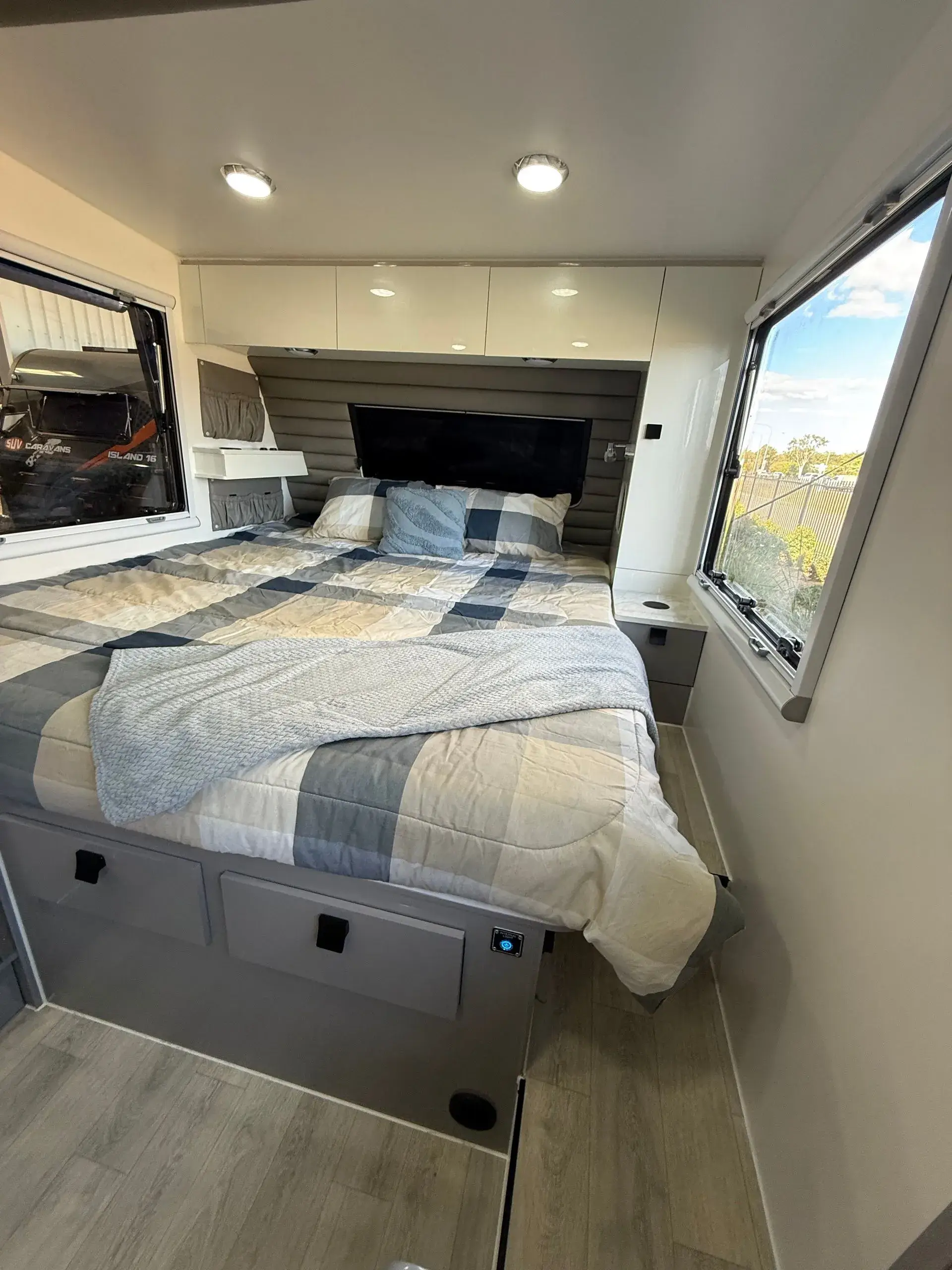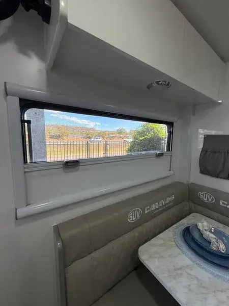 - Tinted double glazed acrylic windows with privacy blinds & midge proof fly screens
